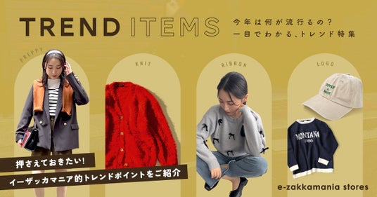 今年で創業25周年を迎え、2022年 楽天SHOP OF THE YEAR 総合賞8位・レディースファッションジャンル大賞受賞などの受賞歴を持つ人気ECサイト「イーザッカマニアストアーズ」を運営する有限会社ズーティー(本社:兵庫県神戸市、代表取締役:今石 雄介)は、イーザッカマニアストアーズ本店サイトにて、随時更新されていくトレンド発信コンテンツ「TREND ITEMS~今年は何が流行るの?一目でわかる、トレンド特集~」(以下、TREND ITEMS)を公開しました。