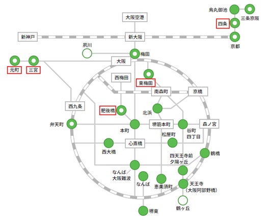 ・大阪東梅田店、大阪江戸堀店は電車を使用せずにお越しいただける方限定とさせていただきます。