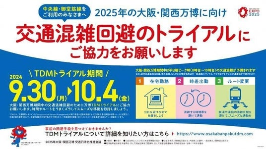 それに伴い、2024年9月30日(月)~10月4日(金)に実施されるTDMトライアル期間に、当社が運営するコワーキングスペースBIZcomfortにて、受付時に「万博TDMに参加したい」と言っていただければ、対象店舗にてドロップインが1日無料になるキャンペーンを実施します(対象外店舗あり)。本キャンペーンでコワーキングスペースを利用する人を増やし、働く場所や通勤時間の分散を呼びかけるだけでなく、大阪や近隣のビジネスワーカーに万博TDMを知ってもらうきっかけとなればと考えています。なお、交通混雑緩和を目的とするため、大阪エリアの対象店舗については、大阪メトロ中央線(弁天町-コスモスクエア間)、御堂筋線(梅田-本町間)のご利用はお控えください。