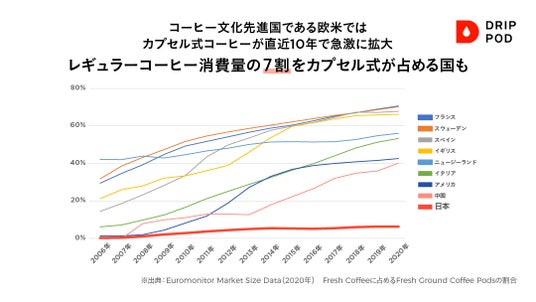 ※2 出典:Euromonitor Market Size Data(2020年) Fresh Coffeeに占めるFresh Ground Coffee Podsの割合