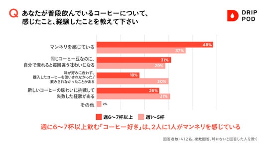 特に週に6~7杯以上飲む「コーヒー好き」は、2人に1人がマンネリを実感。