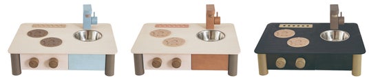 おもちゃはこどもらしい明るい色合いのものが多く、特にキッチンのような大型のおもちゃを購入する際は、色目が気になってしまう方も多いのではないでしょうか。インテリアになじむ日本製ままごとキッチンは、テイストにあわせて選べる3色展開で、おうちにぴったりのカラーを選ぶことが出来ます。