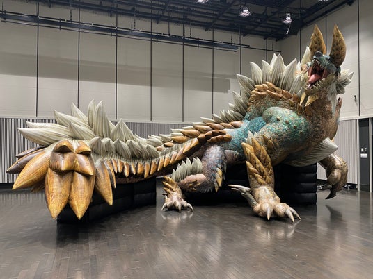 兵庫県立淡路島公園アニメパーク「ニジゲンノモリ」にて開催されている期間限定アトラクション『モンスターハンター・ザ・フィールド inニジゲンノモリ』では、「訓練クエスト」に新たな大型モンスター雷狼竜「ジンオウガ」が、11月2日(土)より新登場いたします。