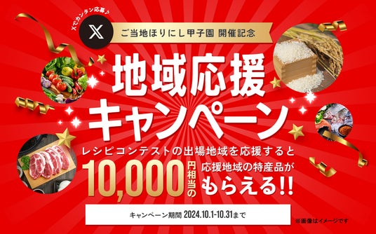 ご当地ほりにし甲子園の開催に先立ち、10月1日から10月31日までご当地ほりにし甲子園のレシピコンテストに参加する地域の特産品10,000円相当が25名様に当たる参加地域を応援するX(旧twitter)キャンペーンも開催しています。
