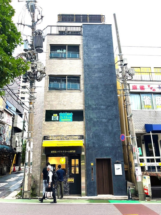 完成後のビル。飲食店等のテナントが入るため、エレベーターなしでの竣工はあり得なかった。