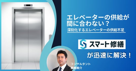 株式会社スマート修繕(本社:東京都港区、以下スマート修繕)が昨年末から始めたエレベーター見積もり支援サービス。社会問題化するエレベーター供給不足に迅速に対応しすそ野を広げ、9月末からは新サービスへ。