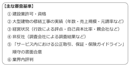 スマート修繕では、独自の審査基準を満たす優良な事業者にご登録していただいています。