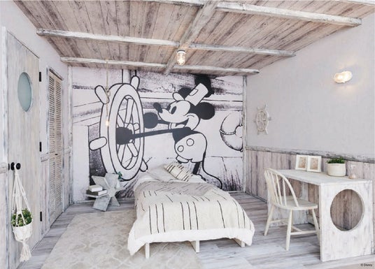 1928年に公開されたトーキーアニメ『蒸気船ウィリー』の作品からインスパイアされた、シャビ―シックな落ち着きのあるお部屋です。
