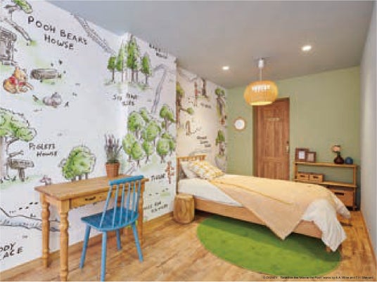プーさんと仲間たちが住む100エーカーの森の中をイメージした、優しいウッドテイストでナチュラル感のあるお部屋です。