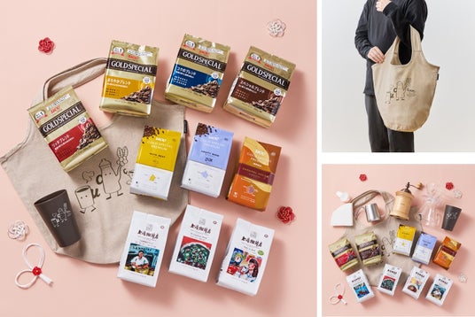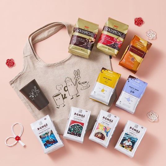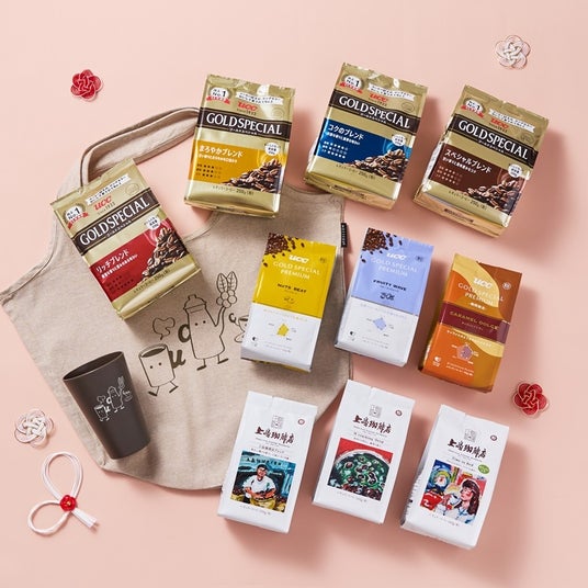 UCC上島珈琲株式会社(本社/神戸市、資本金/10億円、社長/朝田文彦、以下UCC)は、日頃のご愛顧に対するお客さまへの感謝の気持ちを込めて、UCC公式オンラインストア限定コーヒー福袋を、11月15日(金)に発売します。『UCC GOLD SPECIAL PREMIUM』や『上島珈琲店』など人気のUCC家庭用レギュラーコーヒーシリーズをはじめ、UCCのオリジナルキャラクター入りマルシェバッグやタンブラーなどを詰め合わせました。ご自身の毎日のコーヒー飲用スタイルに合わせて、豆・粉・ワンドリップ・コーヒー器具付きの各種セットをセレクトいただける4種のコーヒー福袋を展開します。