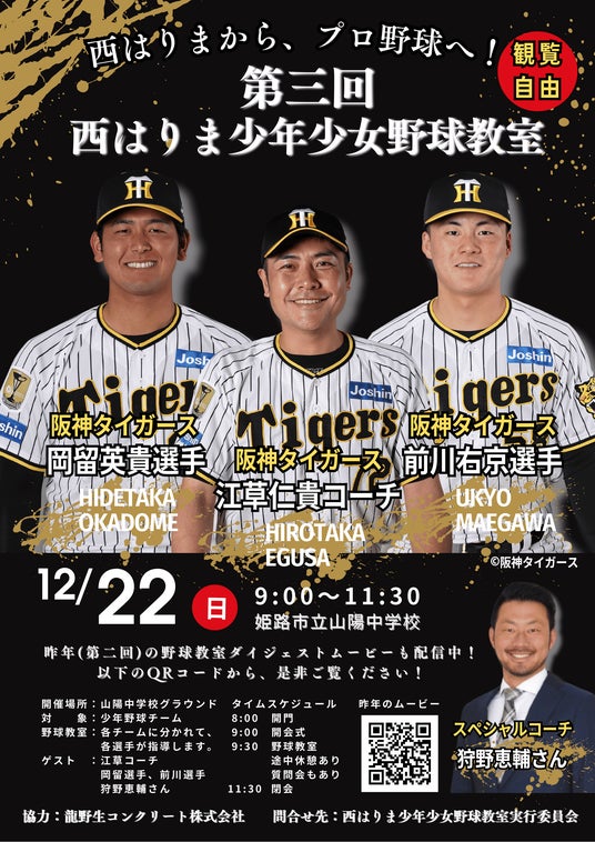 たつの市において生コンクリートの製造と販売を提供する龍野生コンクリート株式会社(本社:兵庫県たつの市新宮町井野原618番地、代表取締役:西田快人)は、2024年12月22日(日)に、「第3回西はりま少年少女野球教室」を開催しました。