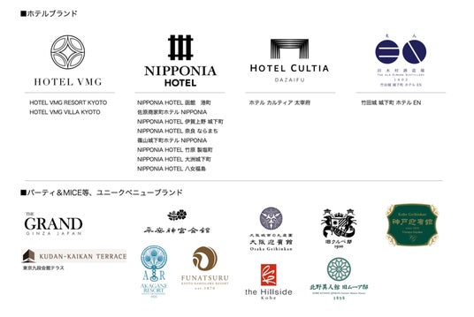 VMG HOTELS & UNIQUE VENUESは、日本全国に22施設展開するホテル・宿泊施設のブランドで、歴史的建造物や文化的に価値のある場所を活用した宿泊体験を提供することを特徴としています。VMGは、文化財級の建物や地域資源を再生・活用し、現代のニーズに合った宿泊施設として運営することで、顧客に特別な体験を提供しています。施設は、宿泊だけでなく、結婚式やイベント、MICEなどのユニークな場所としても利用されており、伝統的な日本文化やその地域の魅力を存分に感じられる環境が整えられています。VMGの施設は、施設ごとにその土地の歴史や文化を反映した体験をできることが魅力です。
