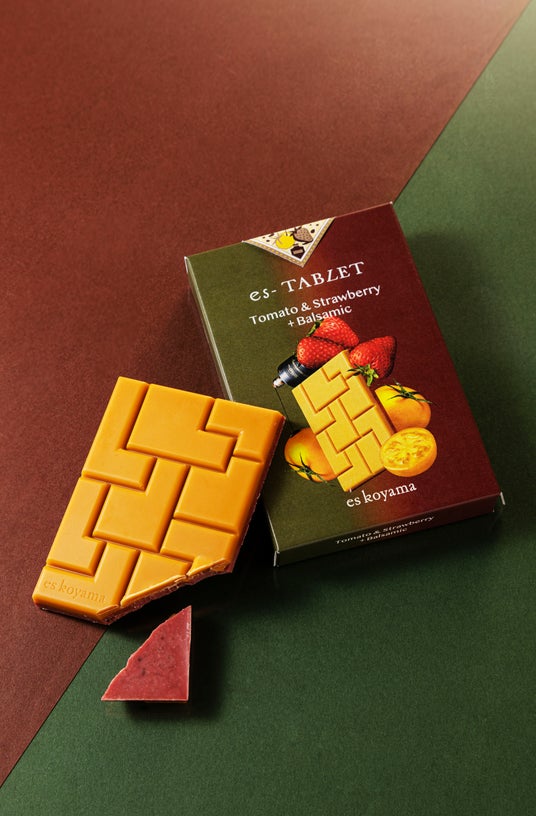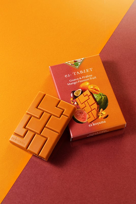 ショコラティエ小山進氏の創作タブレットシリーズ「es-TABLET」。まずはビジュアルにワクワク!齧って、溶かして、咀嚼して、お口の中で感じられる味わいの変化をじっくりとお楽しみください。