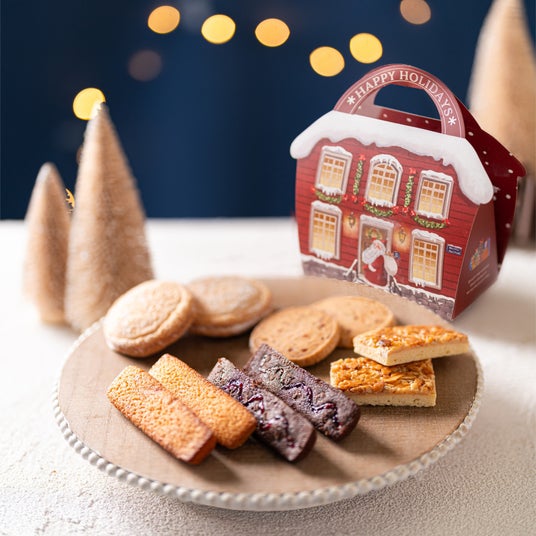 クリスマスでにぎわうお家をイメージしたパッケージの中には、いちごやショコラフランボワーズのフィナンシェ、定番のサブレやブッセ、フロランタンを詰め合わせたX’mas限定ギフトボックスです。