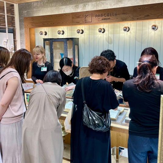 パーセル ジュエリーは恵比寿本店、新宿・横浜・京都・大阪の高島屋、阪神梅田本店、あべのハルカス、大丸福岡天神店、鶴屋百貨店と全国のポップアップショップでご案内しております。