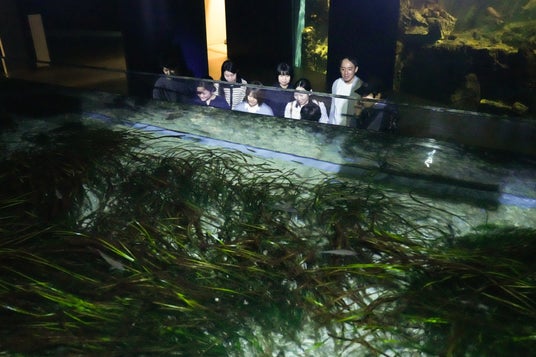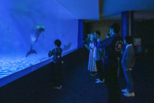 本ツアーでは、飼育員の解説を聞きながら約1時間かけて閉館後の水族館内を巡り、普段見ることのできない夜の生きものの姿を観察いたします。アマモの隙間にじっと隠れる魚や、ゆったりと泳ぐシャチなど、海の生きものたちは普段どのように体を休めているのか、館内全体を探検しながら観察する宿泊者限定の特別なツアーです。