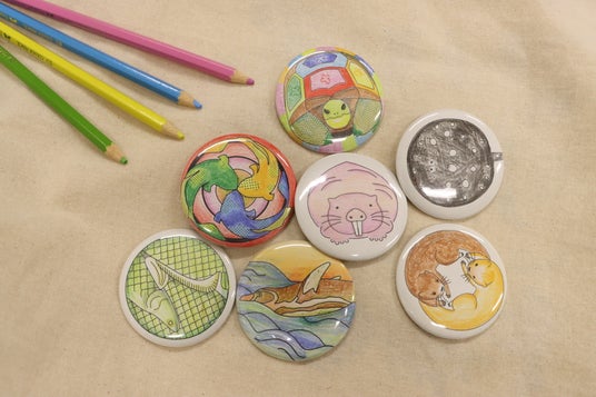 ぬりえ缶バッジ作りアトアで暮らす生きもののイラストに色を塗って、オリジナル缶バッチを作れる体験です。