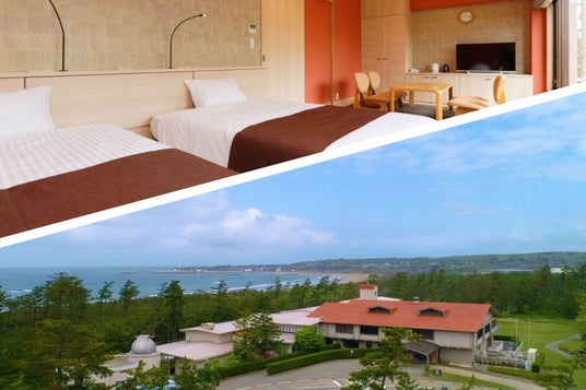 休暇村越前三国(福井県):日本海沿いの高台に位置し、全客室、レストラン、ロビー、露天風呂から日本海が眺められます