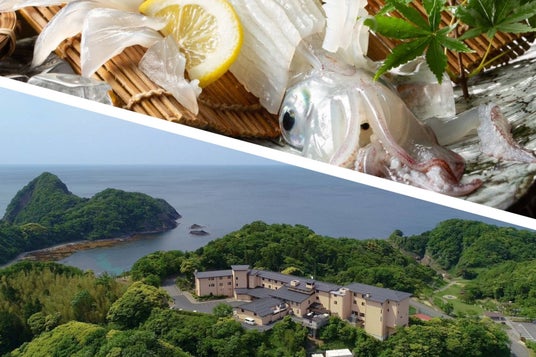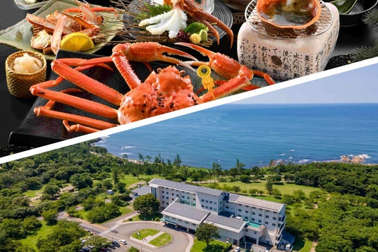 休暇村竹野海岸(兵庫県):入江を見下ろす小高い丘に建ち、夏の活き烏賊、冬は松葉蟹など1年を通じて地域のグルメが楽しめます