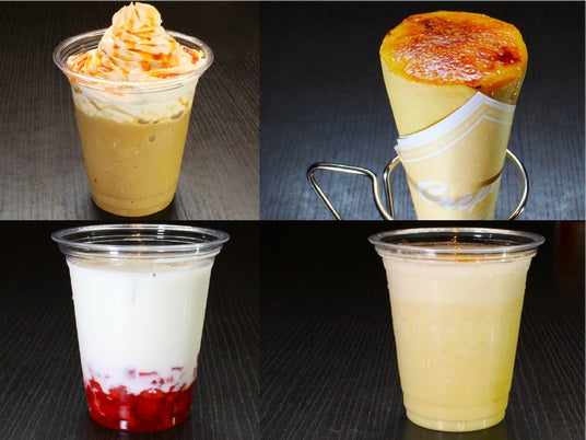当館のオススメのフラッペ「すずペチーノ」やフルーツジュースやアイスクレープブリュレなど、