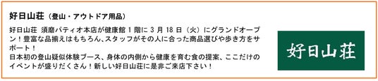 「好日山荘」によるイベントは、4月以降も買物広場や駅前広場、PATIO屋上ひろばでの、防災講座、山ごはんづくりなどを継続的に実施する予定です。