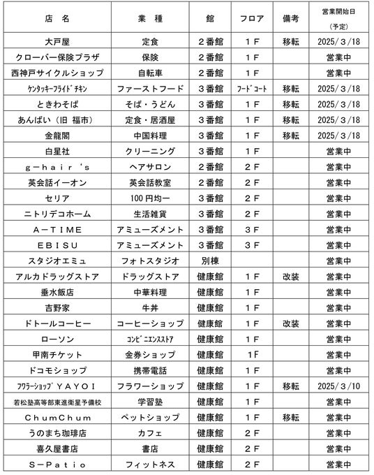 2.既存店一覧 2・3番館、健康館(28店舗)