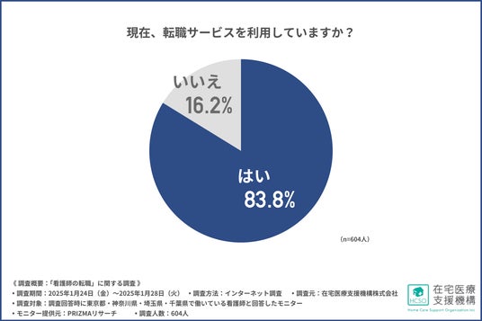 「現在、転職サービスを利用していますか?」と質問したところ、約8割の方が『はい(83.8%)』と回答しました。