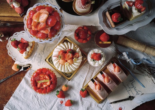 福岡県産あまおういちごだけでなく、奈良県産「淡雪いちご」「古都華」や三重県産「伊賀満天星(いがどうだん)いちご」など、さまざまな品種のいちごを使用した今だけの限定いちごスイーツ達が登場。
