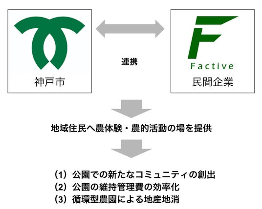 一次産業を軸に地域活性の実現を目指すベンチャー企業・株式会社ファクティブ(本社:東京都武蔵野市、代表:丸山 照彦)は、人口減少社会・脱炭素に向けた社会情勢に適応し地域・企業との連携することで使いたくなる公園の環境づくりを試みる神戸市と連携して、神戸市灘区都賀川公園において、スマート・レンタル農園「LOCAL FARM 神戸大石」の運営を開始します。