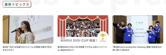 丸井グループの最新の取り組みをお届けするコンテンツを新設いたしました。社内外問わず最新の取り組み事例をお伝えする「最新トピックス」をはじめ、インパクトの実現における実績をお伝えする「インパクト事例」や、共創パートナーとの出会いや共創の実例をお伝えする「共創事例」といったページを設け、取り組みの進捗だけでなく、そこで活躍する社員の姿を交えてお伝えしています。これらのコンテンツは今後も随時更新してまいります。