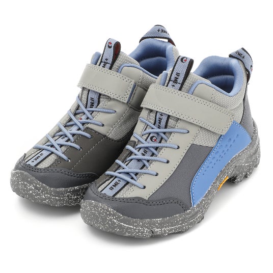 高いグリップ性能と、美しいソールデザインで多くのファンを魅了し続ける世界的メーカー「Vibram」。IFMEが展開するVibramソール搭載アイテムは、“市販の子ども用ハイキングシューズは重くて履かせられない”という声に応え、一般的なハイキングシューズよりも軽量に設計。それでいて、高いグリップ力と泥除け構造で、様々な場面で高い滑り止め効果を発揮します。今作では、よりグリップ性能の高いアウトソールを採用し、よりハイキングやアウトドアで活躍するアイテムへとパワーアップしました。