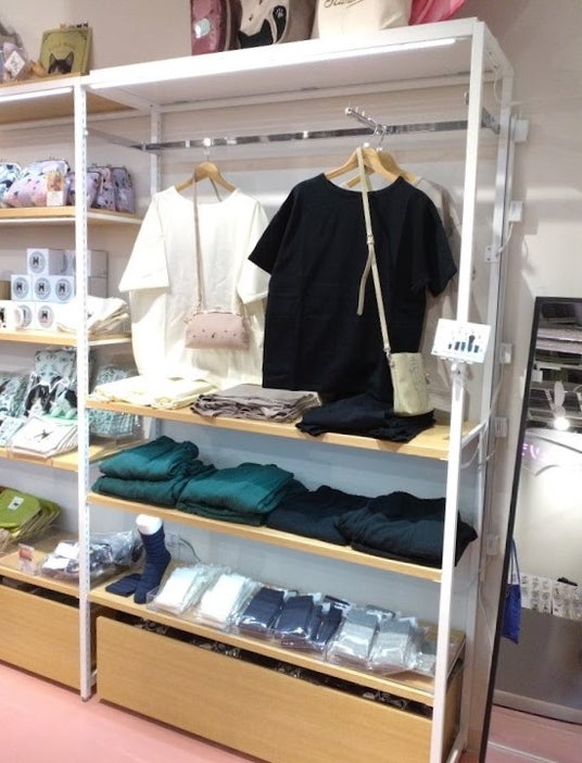 展示の一例/インクルーシブデザインで誰もが輝く未来を作る“裏表前後ろのない服”フェリシモ「オールライト研究所」の3種17SKUのアイテムの実物や紹介動画モニターを展示。