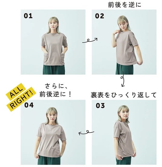 裏表・前後をくるりと返しても着られます。(半そで・長袖共通)