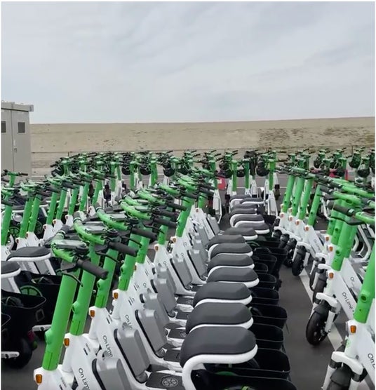 ▲万博会場に設置されたLimeの電動モビリティ(着座式シートボード等)