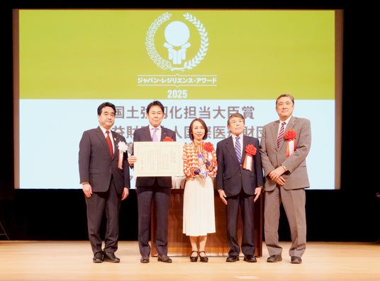 アース製薬株式会社(本社:東京都千代田区、社長:川端克宜、以下 「アース製薬」)は4月22日(火)に開催されたレジリエンスアワード2025で、当社が社会実装を進める革新的酸化制御技術「MA-T(R)」(以下、MA-T(R))と株式会社シリウス(本社:東京都台東区、社長:亀井隆平、以下 「シリウス」)が発売する「洗身装置switleBODY」、公益財団法人国際医療財団・特別養護老人ホーム六甲の館が連携をして推進している、避難所での感染対策および衛生環境保持を目的としたレジリエンス社会構築の仕組み作りが、国土強靭化担当大臣賞を受賞しました。