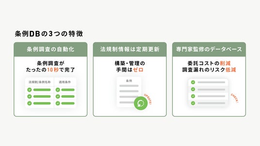 また、不動産事業者・建築主向けの条例調査効率化サービス「条例DB(条例ディービー)」も同時出展いたします。(※「条例DB」は、2025年4月中のリリースを予定しております。)