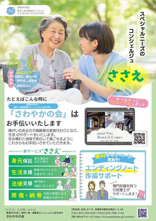 2025年5月20日、認定NPO法人「さわやかの会」(本部:兵庫県川西市)は、終活支援サービス『ささえ』の提供を川西市を中心にプレスタートしました。