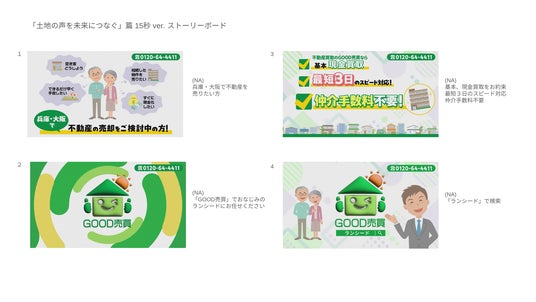 テレビCMでは、明石・神戸エリアを中心に兵庫県・大阪府で展開するランシードの不動産買取サービス「GOOD売買」の特長をオリジナルソングとともに紹介。地域に根ざした“最速の不動産買取会社”としてのブランド認知を高め、スピード売却を求める方々への直接的な訴求を目的としています。