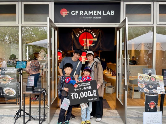 ケンミン食品株式会社(兵庫県神戸市・代表取締役社長:高村祐輝)は、4月13日開幕した大阪・関西万博に出店している「GF RAMEN LAB大阪・関西万博店」で提供しているグルテンフリーラーメンメニュー(6種類)の販売数が、累計で1万杯を突破しました。大阪・関西万博の来場者数は開幕から1ヶ月となった5月13日で約260万人で、来場者の0.4%が当店のラーメンを食べたことになります。記念すべき1万食目に該当したのは愛知県一宮市から来られた村本さんご一家でした。当店ではこれからも多くのお客様にグルテンフリーラーメンを楽しんでいただけるよう、努めていきます。