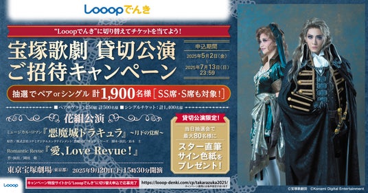 「エネルギーフリー社会の実現」をビジョンに掲げ、再生可能エネルギーのニーズ喚起と普及を目指す株式会社Looop(本社:東京都台東区、代表取締役社長 CEO:森田 卓巳、以下Looop)は、電力小売事業(サービス名:Looopでんき)の市場連動型料金プラン「スマートタイムONE(電灯)」に新規でお申し込みいただいたお客さまの中から抽選で選ばれた1,900名を宝塚歌劇貸切公演に招待するキャンペーンを本日より実施します。(詳細はキャンペーン特設サイトにて:https://looop-denki.com/cp/takarazuka2025/)