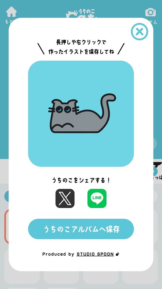 作った猫の似顔絵イラストは、画像にして保存・シェアできます。可愛いうちのこをいっぱい自慢しちゃいましょう。また、つくった猫の似顔絵イラストをSNSのアイコンにしたり、ステッカーにして家族や友人へプレゼントしたり。使い方はさまざま広がります。