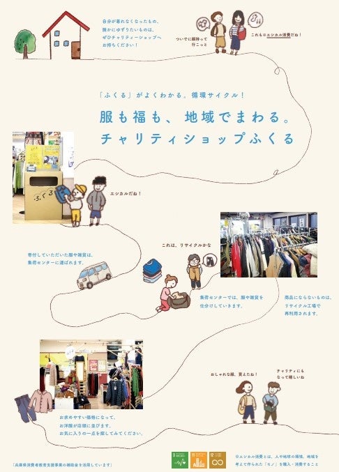 尼崎「チャリティショップふくる」は、障害者福祉事業所NPO法人月と風と(兵庫県尼崎市口田中1丁目17-1-506)が運営している「提供する」「働く」「買う」すべてがボランティアや寄付になる、ロンドン発祥の古着屋です。店長や店員は、障害のある方。みなさんから寄付された、まだ使える物品を仕分けし、販売することで、その収益を障害のある方の賃金や、チャリティショップの運営などに使用させていただいてます。また地域づくりや、つながりづくりの拠点として、地域の大学や小中学校との連携をはじめ、引きこもりの方の支援の場としても活用されています。