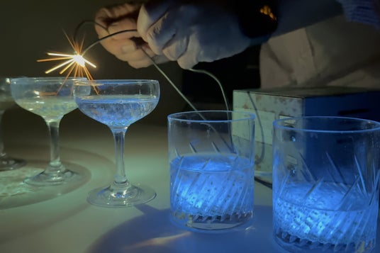 刺激を受けて青白く発光する海ほたるを間近に観察