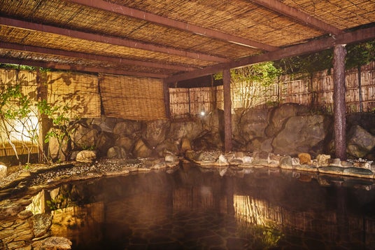 野趣溢れる露天風呂に滔々(とうとう)と溢れる温泉でさっぱりと汗を流して
