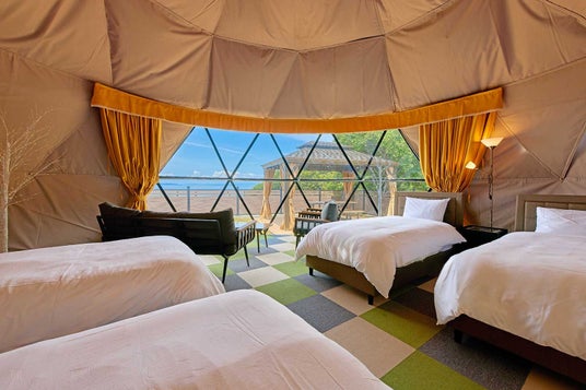 小学生のお子様がおられる方限定!小学生以下のお子様は無料で宿泊できちゃいます!グランピング初心者の女性やお子様にも安心のドーム直結型でバスルーム・トイレを完備で、天候に左右されない快適なグランピングをご用意しております。各棟にプライベートガーデンとサウナも完備!家族の思い出作りにぜひ「淡路サウナグランピングMeri」をご利用ください。