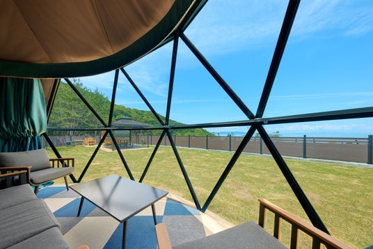 関西屈指のリゾートエリア、瀬戸内海に誕生する全7棟のグランピング施設「淡路サウナグランピングMeri-メリ-」。