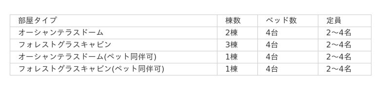 また愛犬と一緒に過ごせるドッグガーデン付きの客室はドームとキャビンの各1棟限定でご用意。