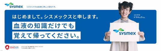 さらに、シスメックスのCMにも登場する「ドラキュラさん」が、電車広告にも登場。血液の専門家であるドラキュラさんが、血液検査の可能性やシスメックスの取り組みを紹介するなど、ユーモアを交えた演出で、通学・通勤・観光の移動時間に血液や検査への関心を楽しく広げていきます。