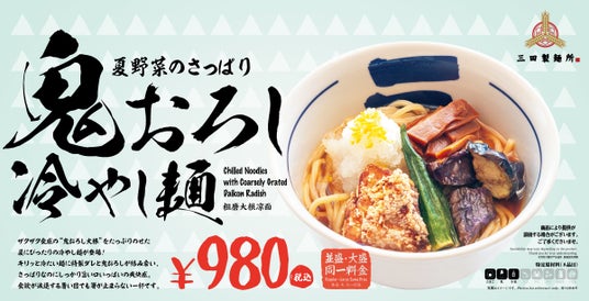 三田製麺所の夏の新定番 ”夏野菜のさっぱり鬼おろし冷やし麺” を、ぜひご堪能ください。