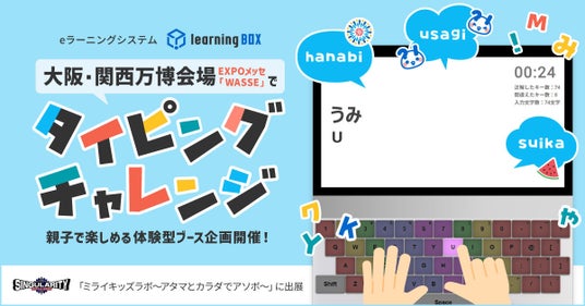 eラーニングシステム「learningBOX」を提供するlearningBOX株式会社(本社:兵庫県たつの市、代表取締役:西村 洋一郎)は、2025年7月31日(木)・8月1日(金)に開催される「ミライキッズラボ~アタマとカラダでアソボ」(会場:EXPOメッセ WASSE 大阪・関西万博内)の隣接ブースに出展いたします。当日は、learningBOXのコンテンツ機能「タイピング教材」を活用したタイピングチャレンジイベントを開催。5段階の難易度からなるタイピングにチャレンジし、クリアするとオリジナル記念品がもらえる、親子で楽しめる体験型ブース企画です。